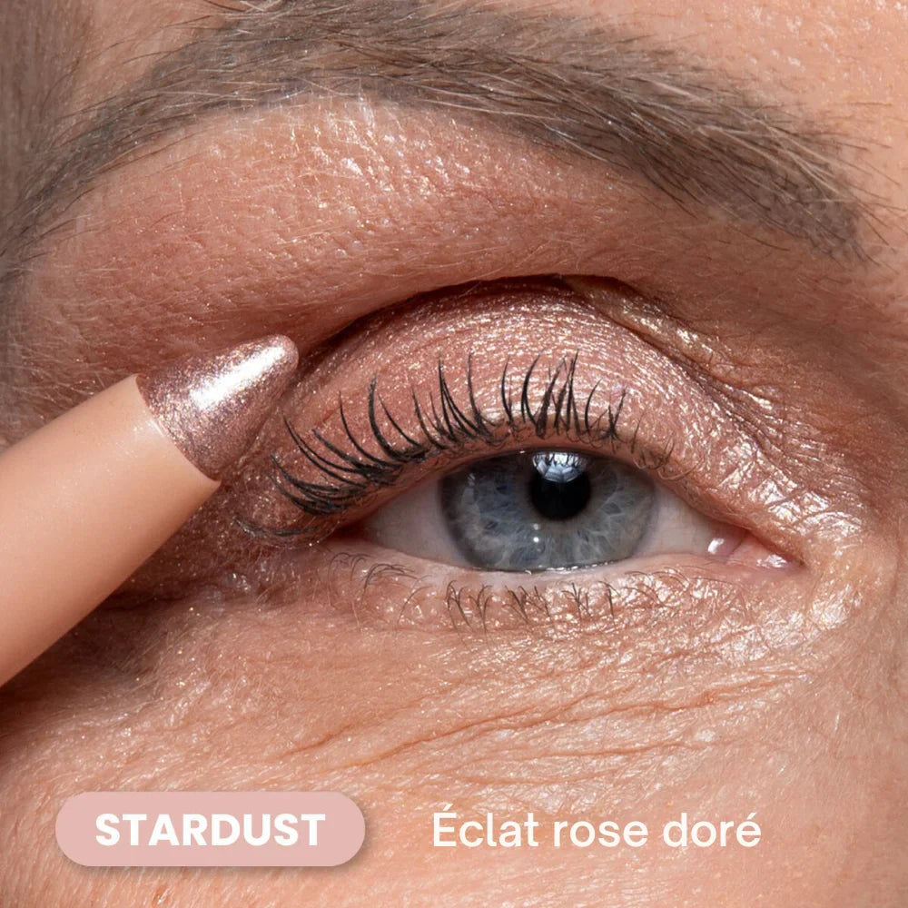 Luma Bright illumine le regard toute la journée sans filer dans les plis. Son fini reste frais et lumineux, même sur paupières matures ou grasses.
